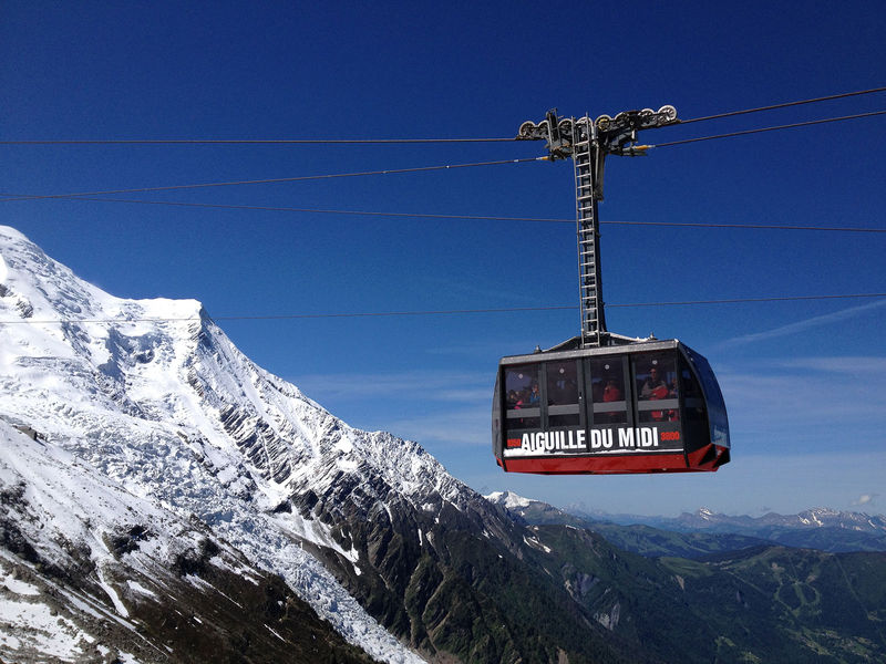 A must-do on the visitors’ list in Chamonix is the Aiguille du Midi cable car that climbs to 3777m with wonderful views of the French, Swiss and Italian Alps. A lift takes you to the summit terrace at 3842m with great views of Mont Blanc.